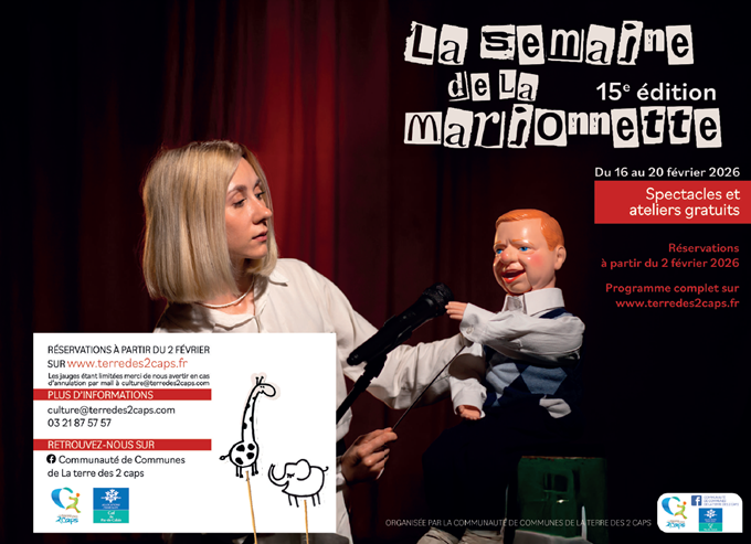 Semaine de la marionnette : 15ème édition !Le service culturel de la Communauté de Communes de La terre des 2 caps vous a concocté un programme de spectacles gratuits et tout public, dès 1 an !