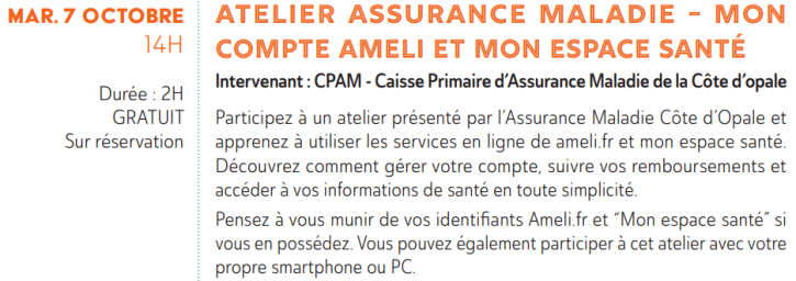 Atelier assurance maladie : Mon compte Ameli et mon espace Santé, le 7 octobre à 14h