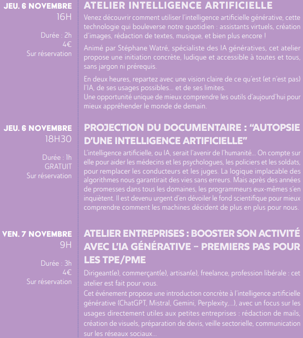 Jeudi 6 novembre à 16h : Atelier tous public pour une initiation concrète, ludique et accessible à toutes et tous, sans jargon ni prérequis.