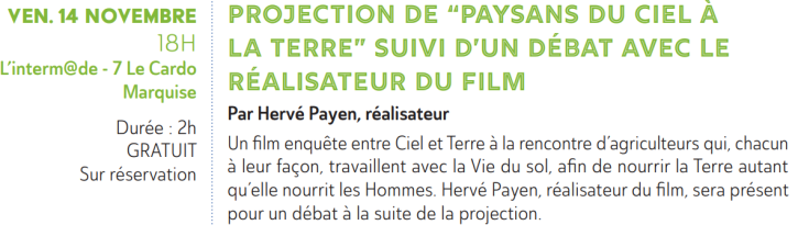 Projection de “Paysans du Ciel à la Terre” suivi d’un débat avec le réalisateur du film, Hervé Payen