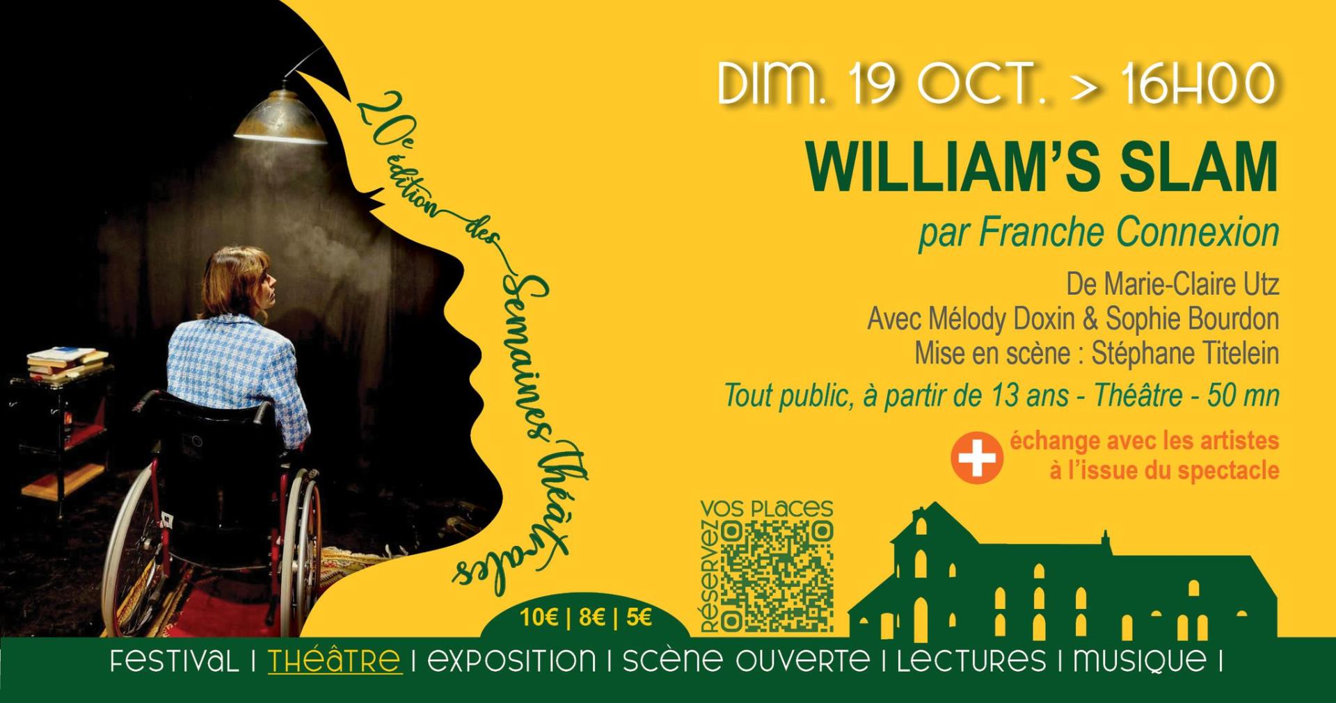 Appartement bourgeois et poussiéreux, Agathe rencontre par l’intermédiaire d’une professeure assez particulière the big William. Les deux femmes que tout oppose vont alors se lier par un amour commun, celui des mots. Et plus particulièrement dans les mots chantants et chanmés de Shakespeare. Agathe, le théâtre, elle kiffe ça, “c’est trop de la bombe” mais ce qu’elle aime par-dessus tout c’est le slam. Ensemble, elles apprennent à détruire le mur des a priori et faire de leur antagonisme une création unique.