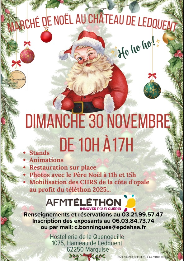 Stands – Animations – Restauration sur place – Photos avec le Père Noël à 11h et 15h.